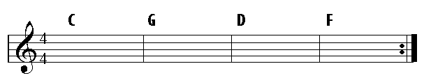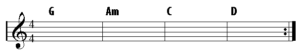 Try playing the above chord progression using a strum of your own. If you don't know the chords, they are shown at the bottom of this page - you will hear that the progression sounds good and repeats itself through a strong chord movement.